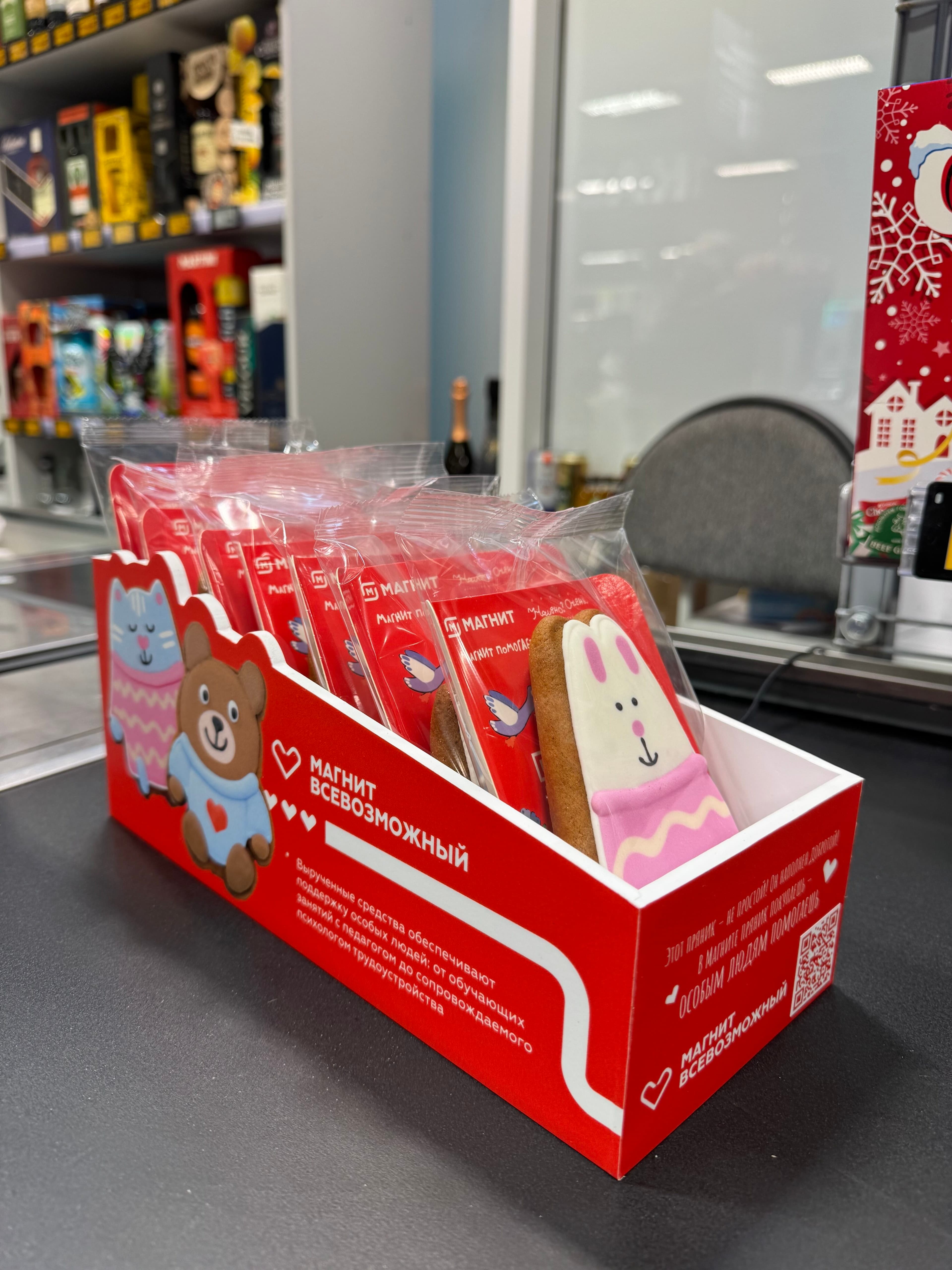 «Многие взрослые люди с особенностями интеллектуального и психического развития могут и готовы работать, но не каждому из них удается раскрыть свой потенциал и реализовать себя. Особенности здоровья ограничивают способность таких людей к общению, но зачастую вознаграждают их даром творческой продуктивности. Творчество – это возможность для них проявить себя, найти призвание и поддержку. Проект «Добрый пряник» в «Магните» позволяет любому подарить шанс тем, кто особенно в этом нуждается: пряники созданы по рисункам художников с ментальными особенностями из проекта «Наивно? Очень», и каждая покупка — вклад в их будущее».