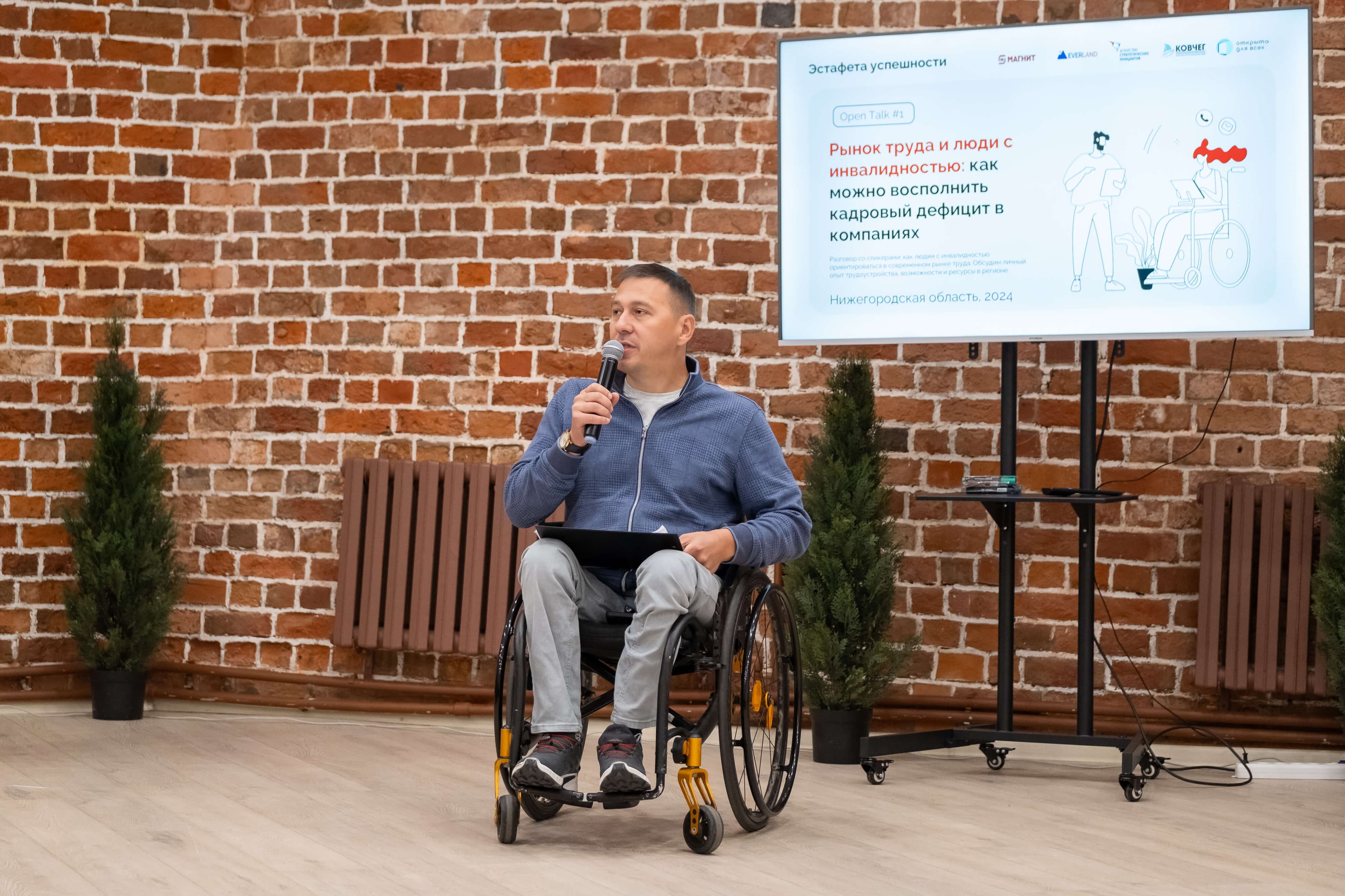 13 августа прошел первый open talk «Эстафеты успешности» в Нижнем Новгороде. Участники и спикеры поговорили о том, какие условия необходимы людям с инвалидностью, как конкурсы могут помочь в трудоустройстве, почему важен наставник и чем он может быть полезен, а также как сотрудники с инвалидностью влияют на социальную ответственность компании.
