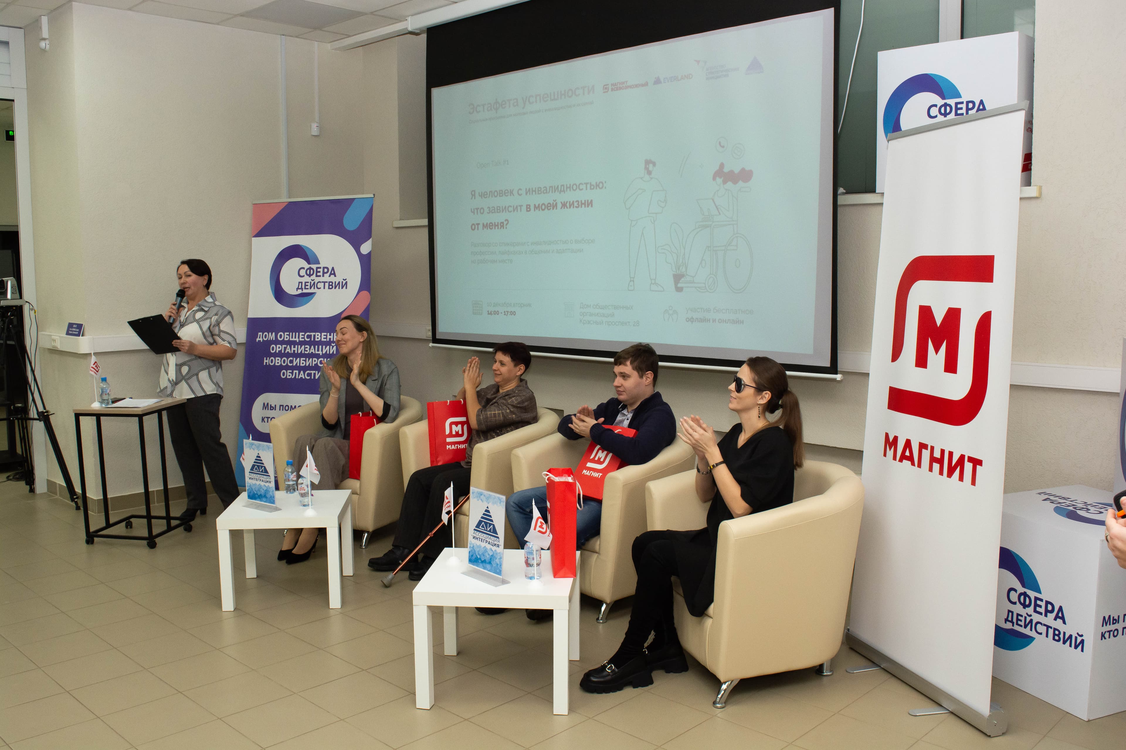 «Эстафета успешности» проводится Новосибирской межрегиональной общественной организацией инвалидов «Ассоциация «Интеграция» при участии компании «Магнит», Агентства стратегических инициатив и проекта Everland. Проведение «Эстафеты» в регионе поддержано Министерством труда и социального развития Новосибирской области.