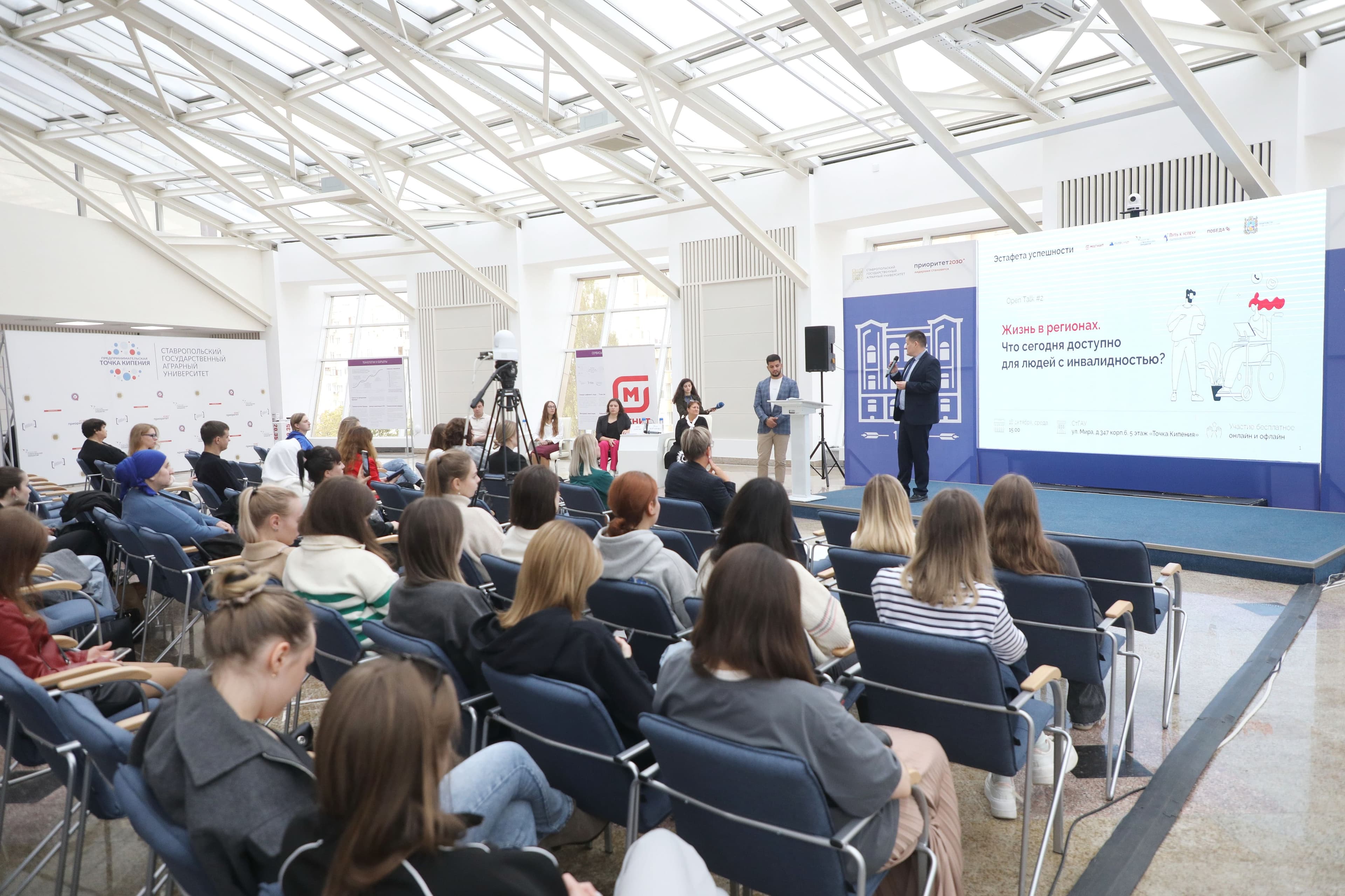 19 июля состоялся первый open talk в Ставропольском крае. Вместе со спикерами мы обсудили, как правильно выбирать профессию, как хобби может стать заработком, как государство помогает студентам с инвалидностью определиться с профессией. Участники рассказали о своем пути в профессию и поделились лайфхаками.