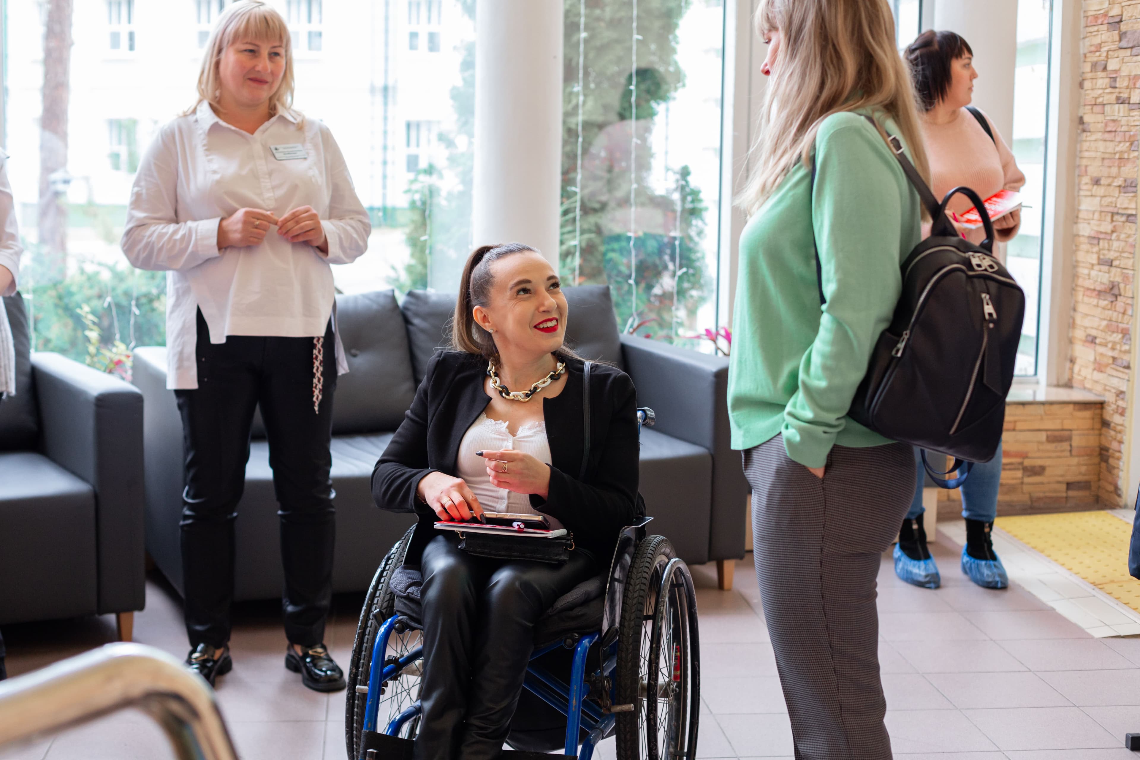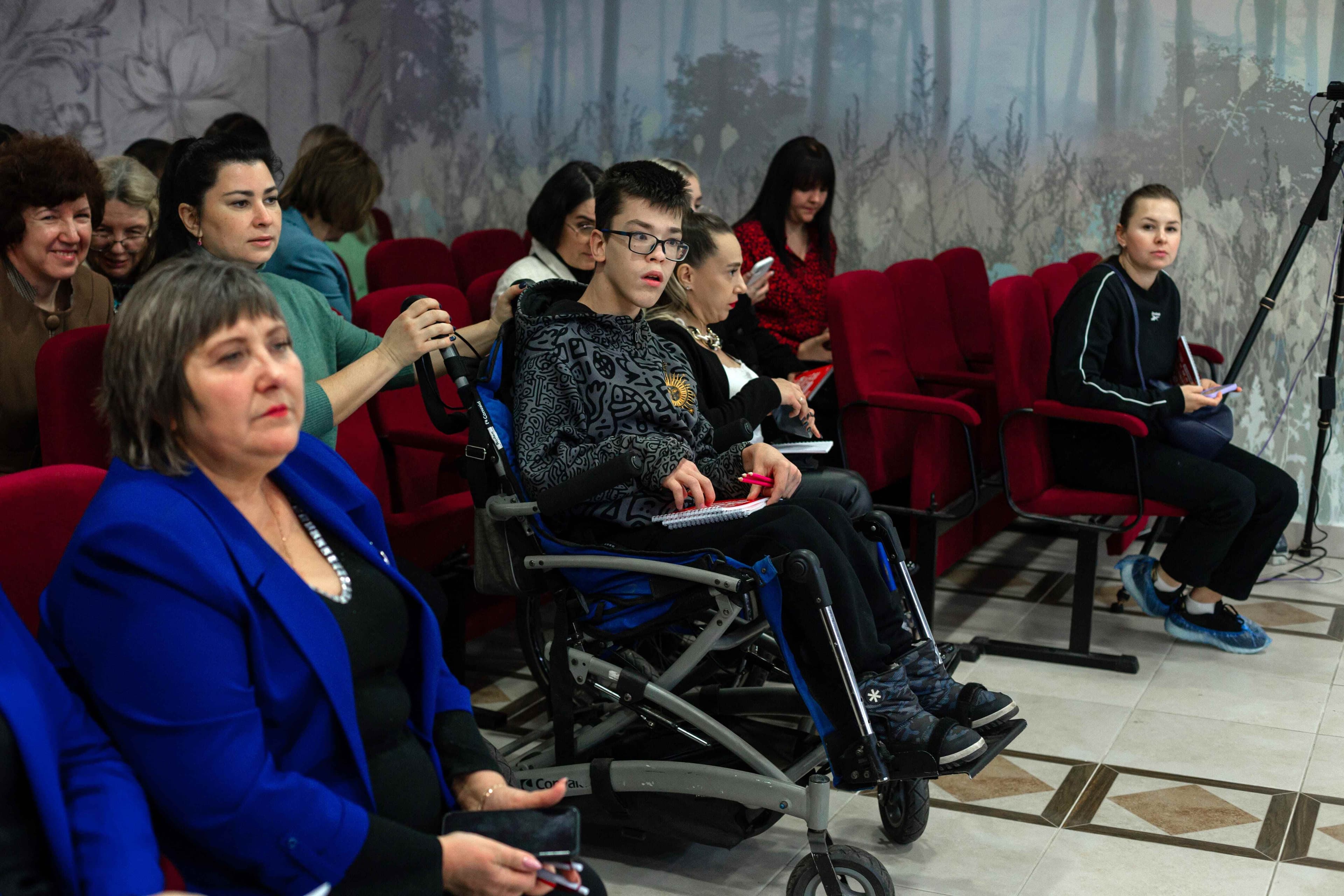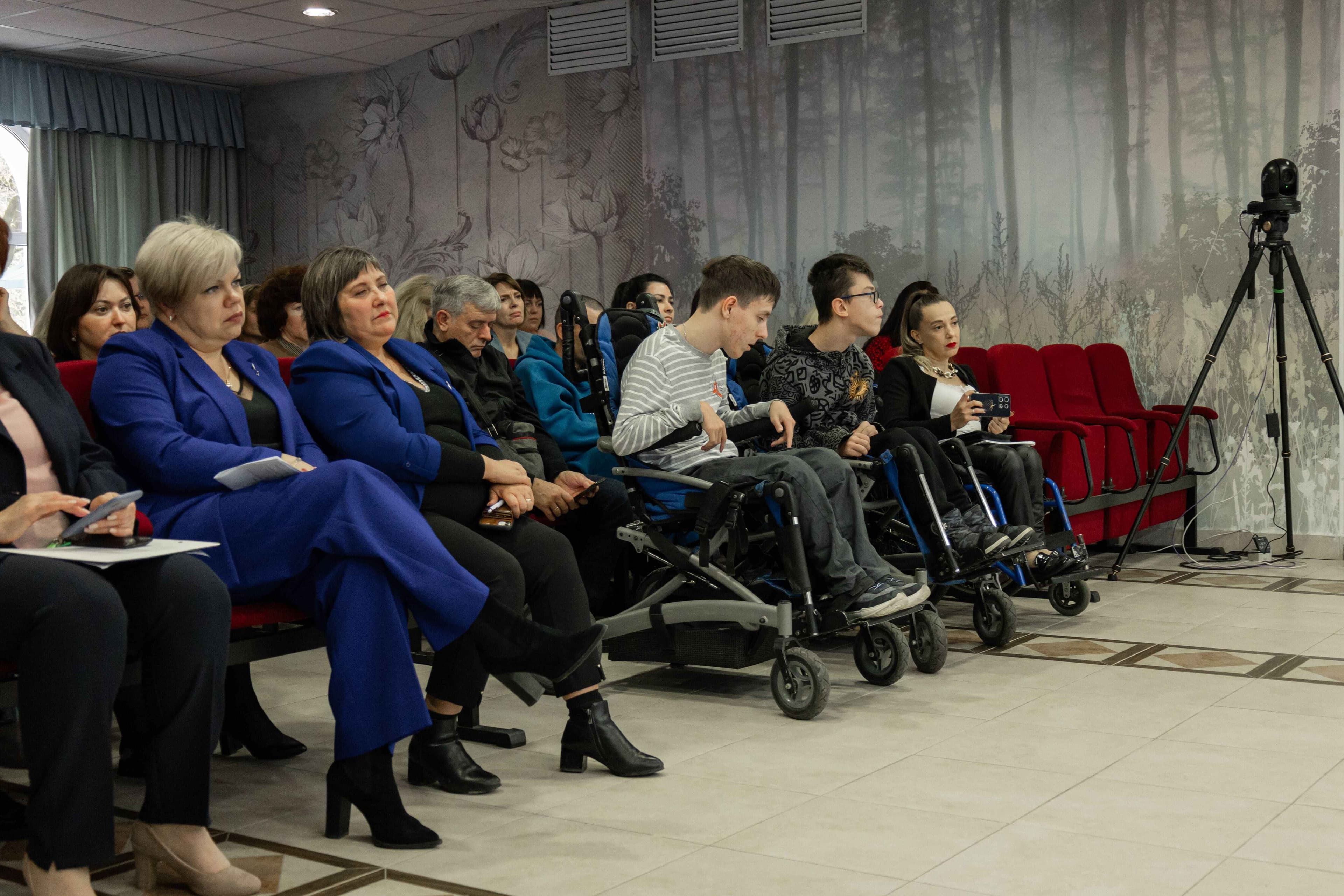 участница из зала, передвигается в инвалидной коляске